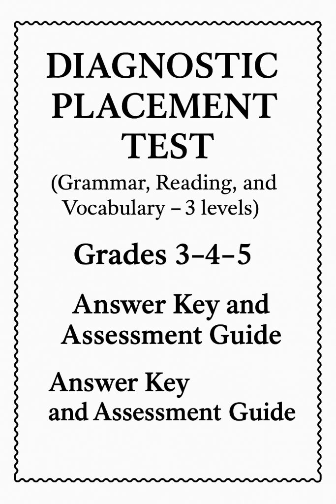 This comprehensive Diagnostic Placement Test is your all-in-one tool for identifying student strengths and gaps in Grammar, Reading, and Vocabulary across Grades 3, 4, and 5.