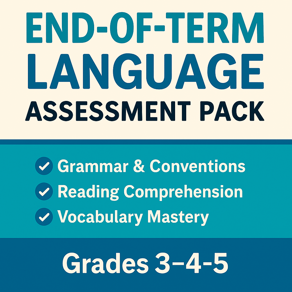 Make end-of-term evaluation stress-free and standards-aligned with this comprehensive Language Assessment Pack for Grades 3, 4, and 5. This resource includes three complete levels of engaging and rigorous assessments in: